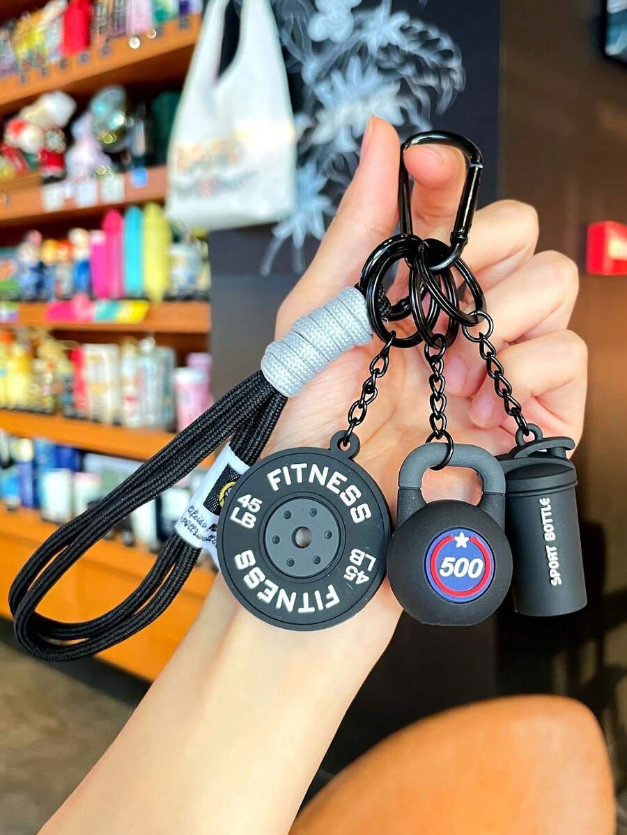 哑铃和杠铃钥匙扣套装,非常适合挂在背包上。创意健身配件包括哑铃、杠铃片、拳击手套和其他装饰吊坠。可DIY成钥匙扣和包包挂饰。