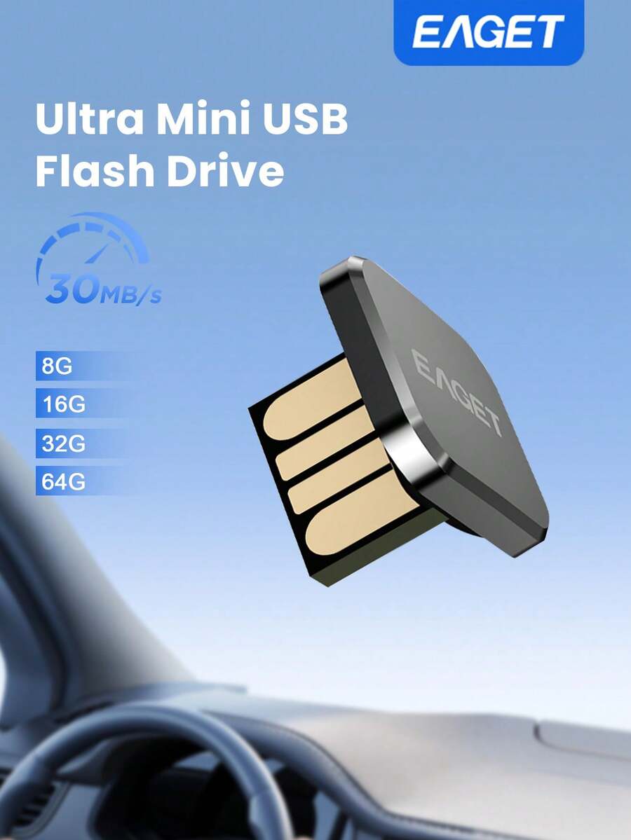 EAGET 迷你车载U盘 - USB 2.0,8/16/32/64GB容量可选,高速传输,支持99%设备上的无损音乐播放,精美金属盒包装