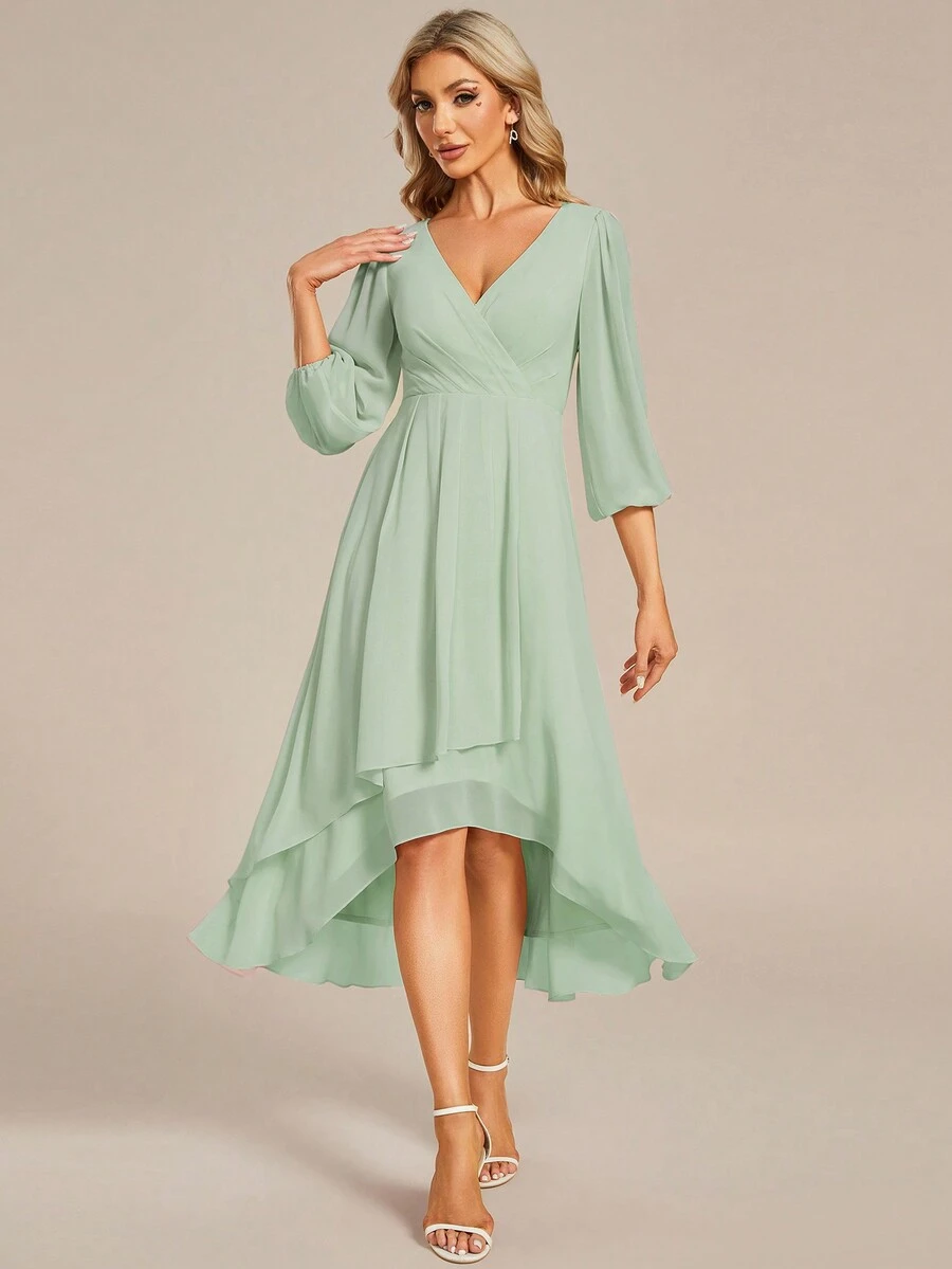 优雅 V 领灯笼袖婚礼宾客礼服