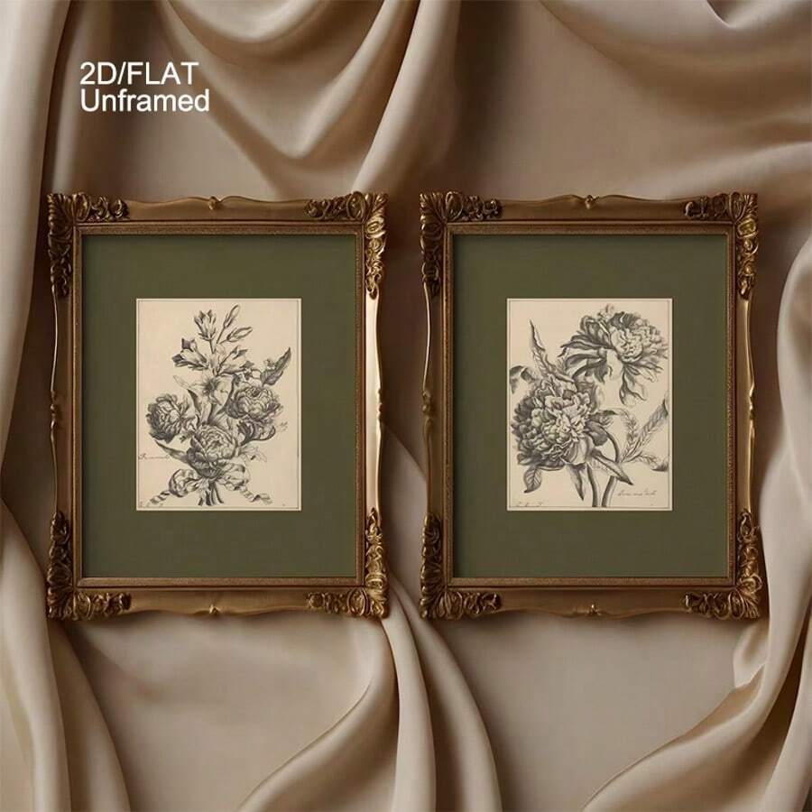 2D/平面,无框,2 件/套鼠尾草绿色墙壁装饰艺术画,复古风格印刷品,深绿色植物帆布海报,花卉素描艺术印刷品,花卉绘画艺术,古董印刷品,房间装饰,客厅装饰艺术,现代家居墙壁装饰艺术,理想的家居礼物创意,适用于客厅书房卧室走廊装饰艺术画