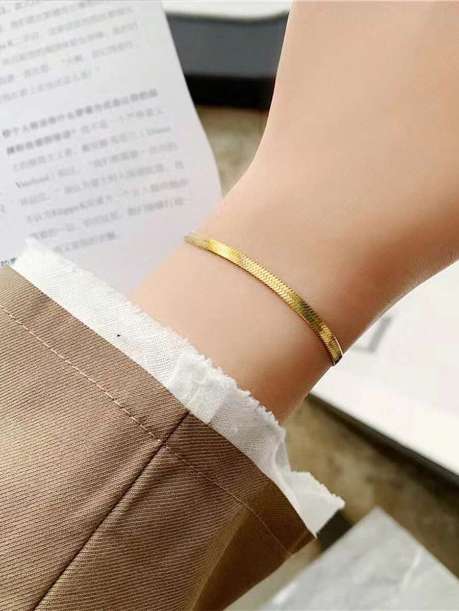 Nooxian 1 件女士不锈钢串珠手链,简约时尚金色不锈钢刀片链手链