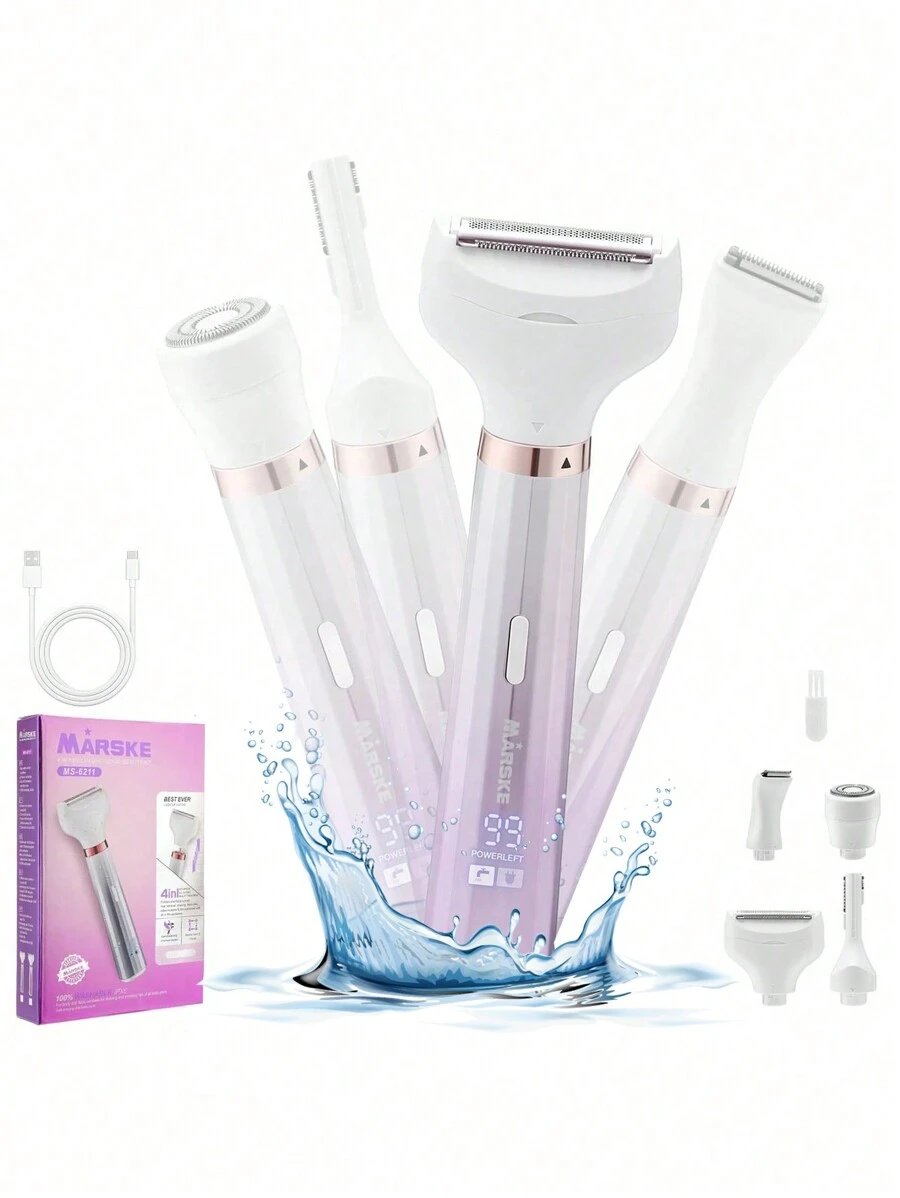 女士电动剃须刀,四合一女士比基尼修剪器,干湿两用电动剃须刀,无痛女士剃须刀,面部脱毛,适用于面部、鼻毛、眉毛、手臂、腋窝、腿部、阴毛
