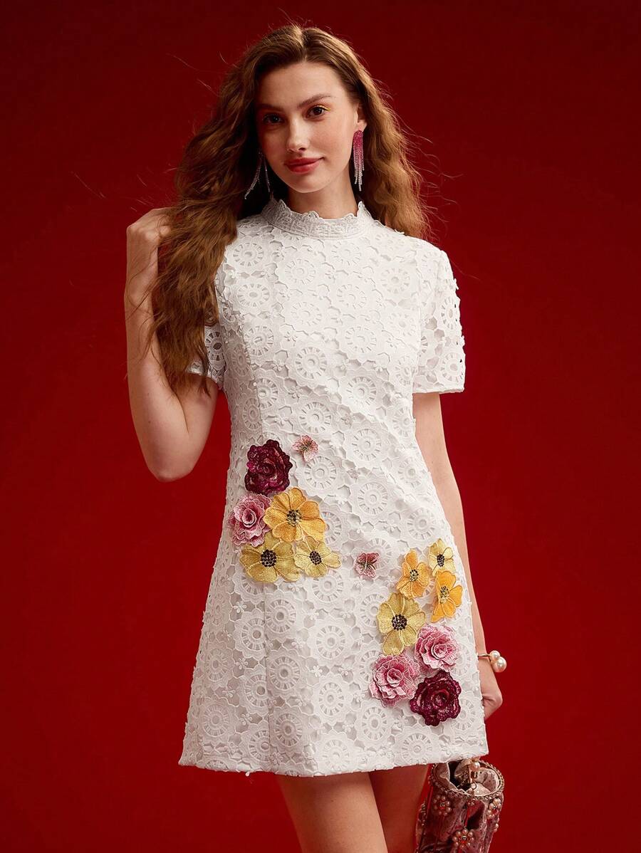 MOTF PREMIUM 花卉刺绣短袖连衣裙,情人节装