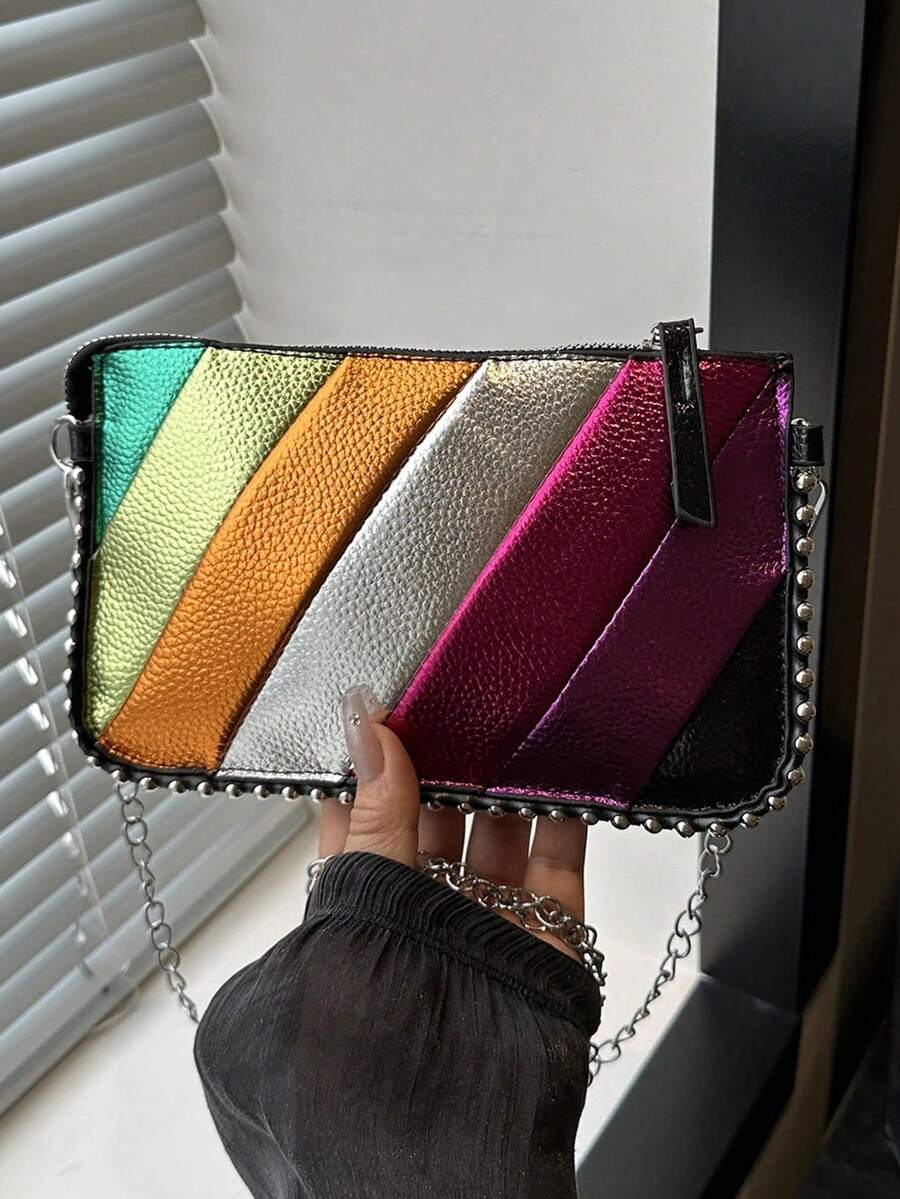 时尚彩虹色女士斜挎包,新款魅力单肩包,串珠流行手提包