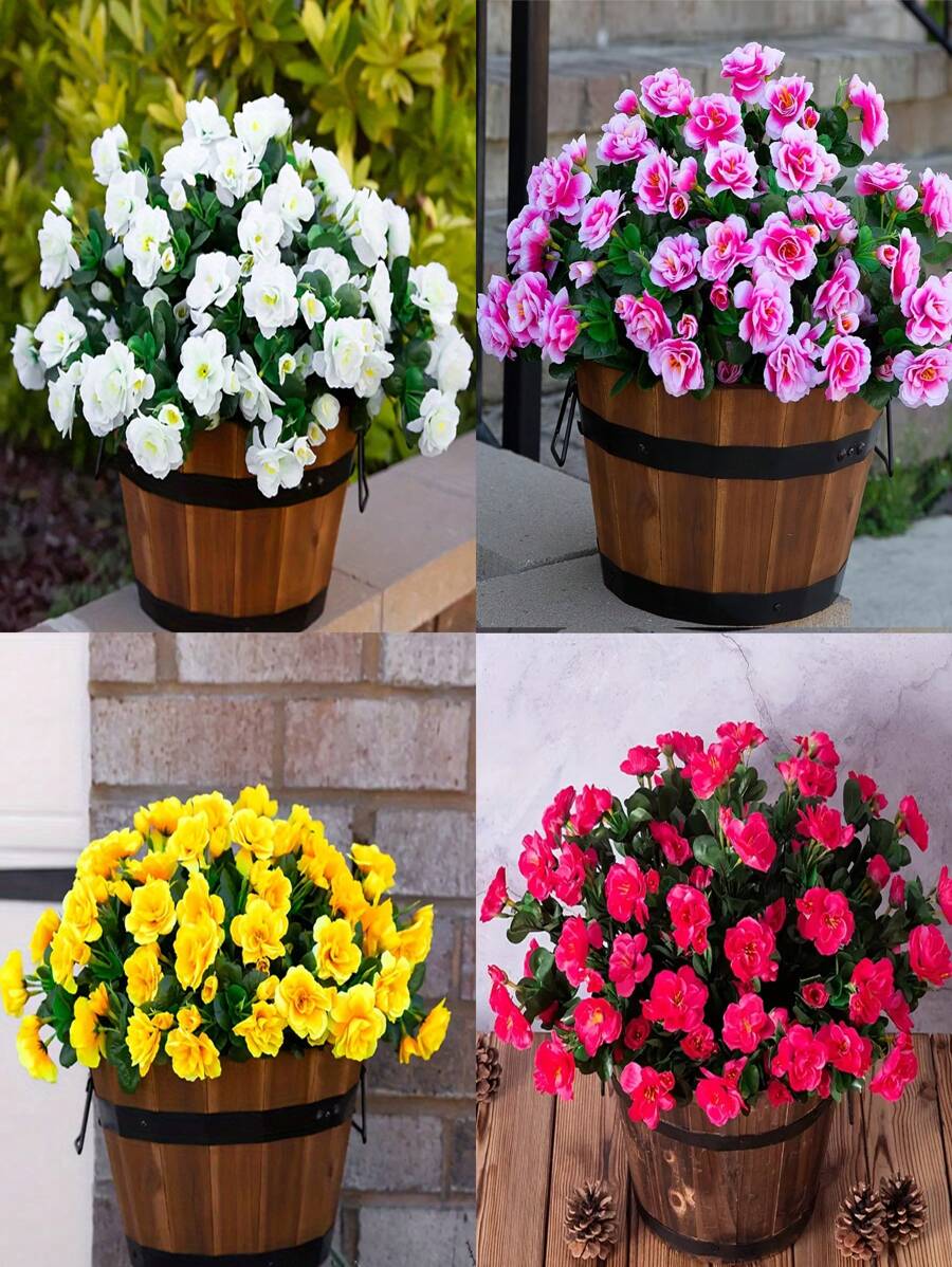 12/4/2 件人造杜鹃花、黄山茶花假花、抗紫外线织物花束、人造花、户外人造植物,适用于秋季装饰、万圣节装饰、房间装饰、家居装饰、卧室装饰、户外装饰、厨房装饰、毕业装饰、庭院装饰、DIY、房间装饰美学、婚礼装饰、墙壁装饰、花园装饰