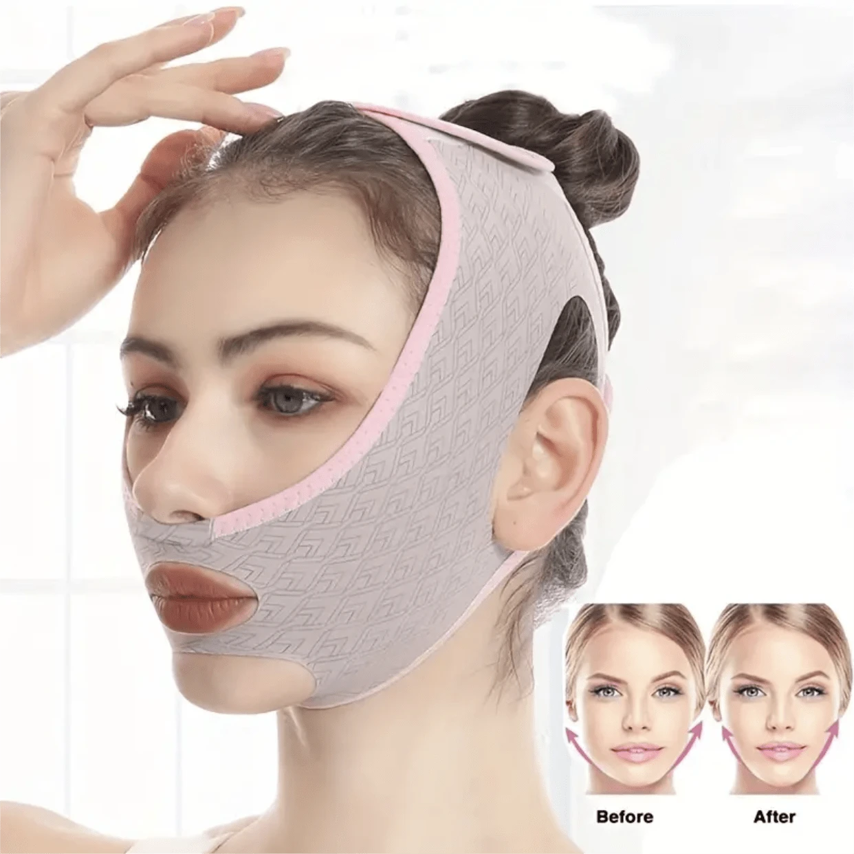 瘦臉瑜珈纖維帶,提拉緊實面部和頭部,粉色