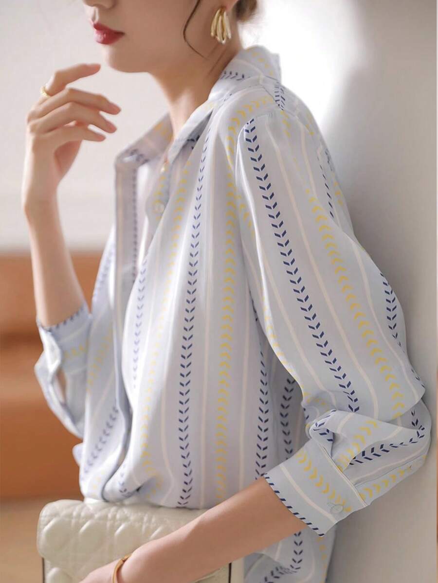 女士秋季服装,条纹前扣优雅女士衬衫,商务休闲女士上衣,初秋时尚长袖女士衬衫,万圣节服装女士