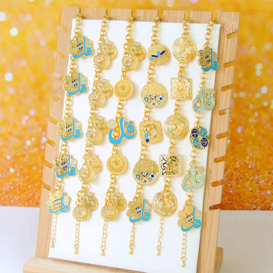 时尚迪拜嘻哈珠宝手镯 21k镀金中东伊斯兰幸运手镯 土耳其女士复古派对珠宝
