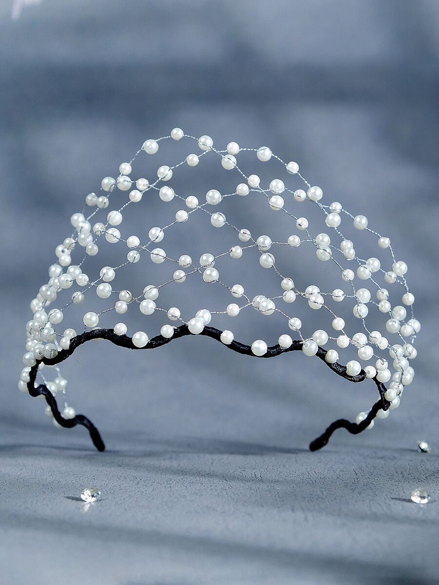 1件装女士珍珠发网皇冠头饰,时尚婚礼发饰头冠,情人节配饰