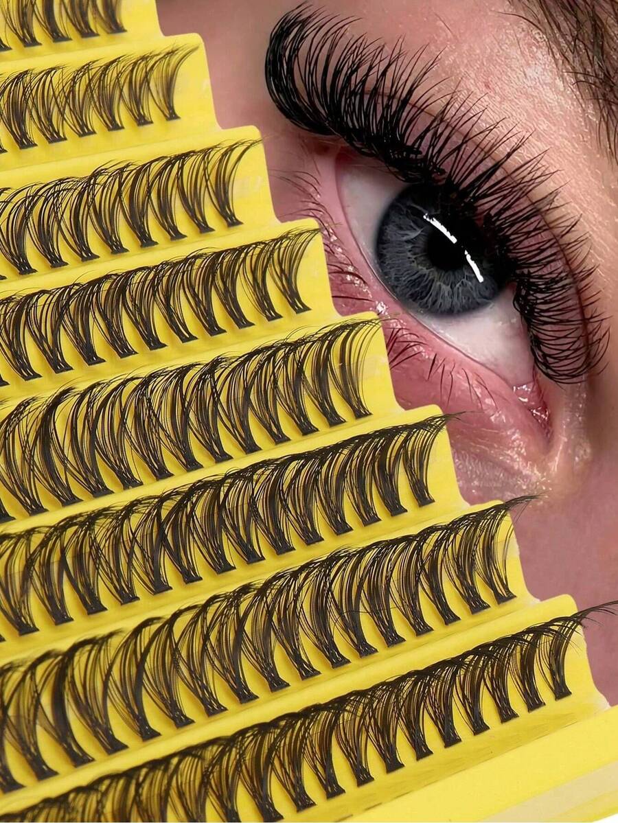 Fengxiu Eyelash 200片装假睫毛,8-16毫米D型卷翘蓬松3D分段式假睫毛,DIY自然单根假睫毛,柔软自然,易于使用,单根假睫毛,DIY单根假睫毛簇,D型卷翘假睫毛,睫毛簇,单根假睫毛,睫毛,假睫毛