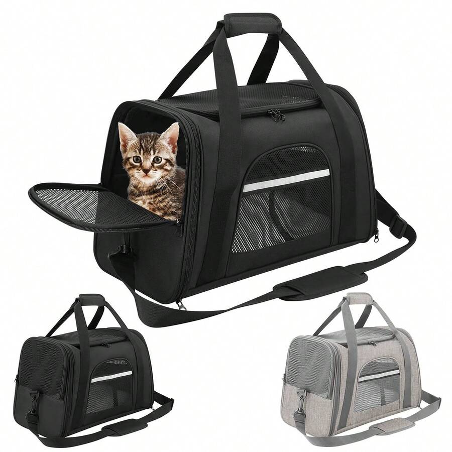 可折叠宠物背包,顶部透气设计,符合航空运输标准,适合体重低于 15 磅的猫咪和小型犬。