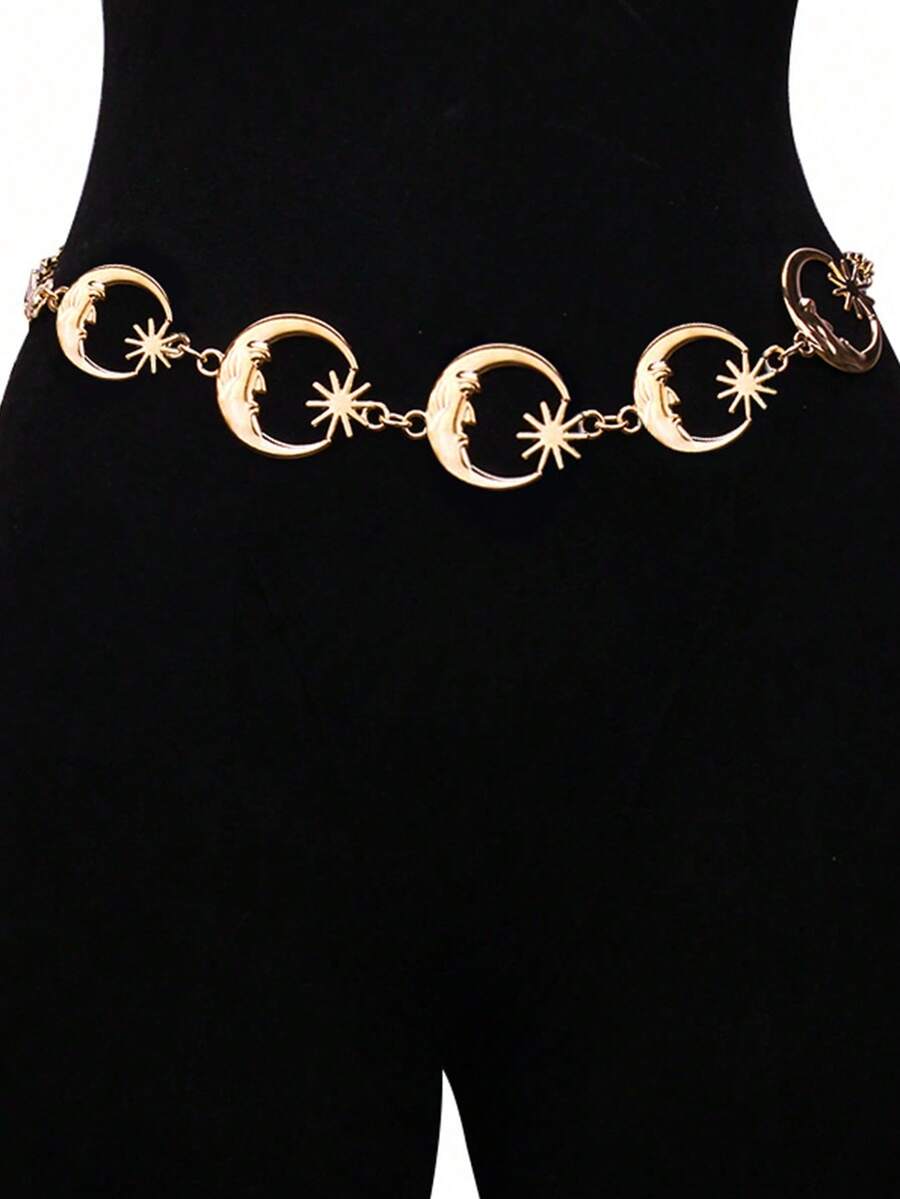 1 件时尚天体金属身体链 - 月亮星星太阳腰饰分层肚脐链,适合女士,优雅百搭配饰,适合派对夜晚外出或日常服装,夏季、学校秋季、秋季、万圣节