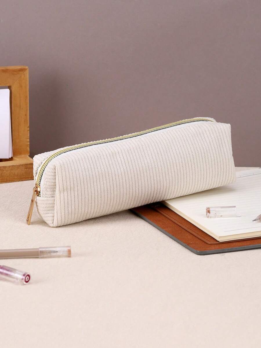 1/2/5个装灯芯绒白色铅笔盒,多功能铅笔盒,菱形图案大容量铅笔盒,文具包,学生铅笔盒,铅笔袋,书包