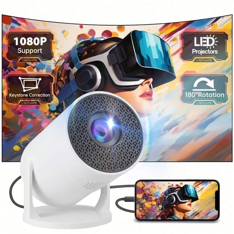 带内置扬声器的无线投影仪,WIFI 连接视频投影仪,屏幕镜像,梯形校正,兼容 1080P,支持音频、图像、视频,适用于智能手机、笔记本电脑、家庭影院和户外露营