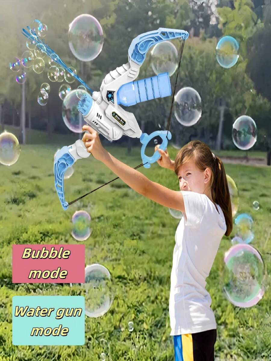 二合一弓箭泡泡枪,夏季新款泡泡追逐大战创意泡泡秀弓箭水泡泡枪双模式户外水上游乐游泳设备,适合 3-14 岁家庭聚会、沙滩派对、互动小工具、男孩和女孩的圣诞节和生日礼物