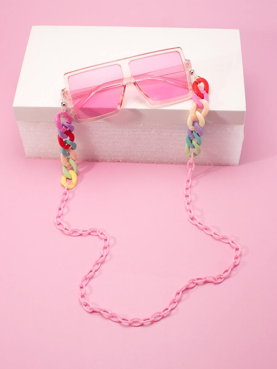 女孩著色鏡片太陽眼鏡和太陽眼鏡鏈