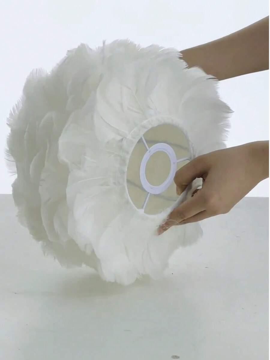 手工波西米亚羽毛灯罩 - 高品质羽毛,无需用电,现代简约设计,适用于卧室、婚礼和家居装饰,艺术灯罩,浪漫卧室装饰,独特照明,卧室装饰灯罩