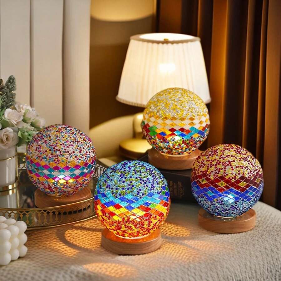 极具吸引力的马赛克地中海插入式玻璃小夜灯卧室床头氛围礼物