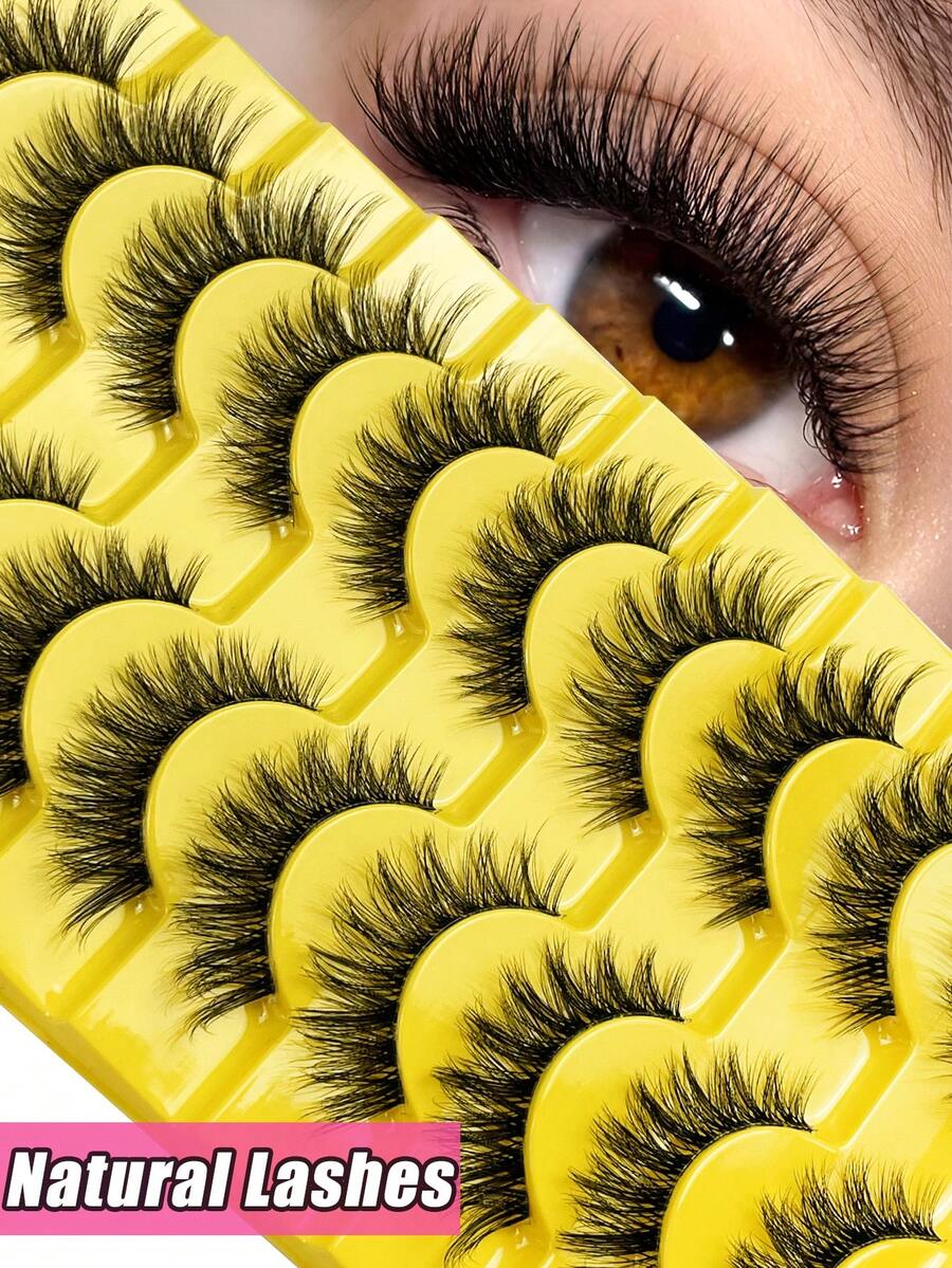 Hinarin 10对蓬松轻盈自然C型卷翘3D立体仿貂毛假睫毛,透明睫毛杆