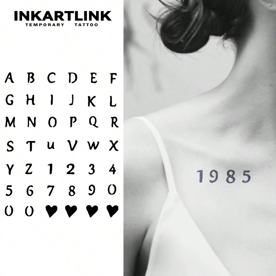 INKARTLINK革命性技術紋身貼紙,半永久性紋身,逼真的紋身,字母、數字和情感紋身,臨時紋身,假紋身,耐水,仿真度極高,特色設計的紋身,鮮艷的紋身