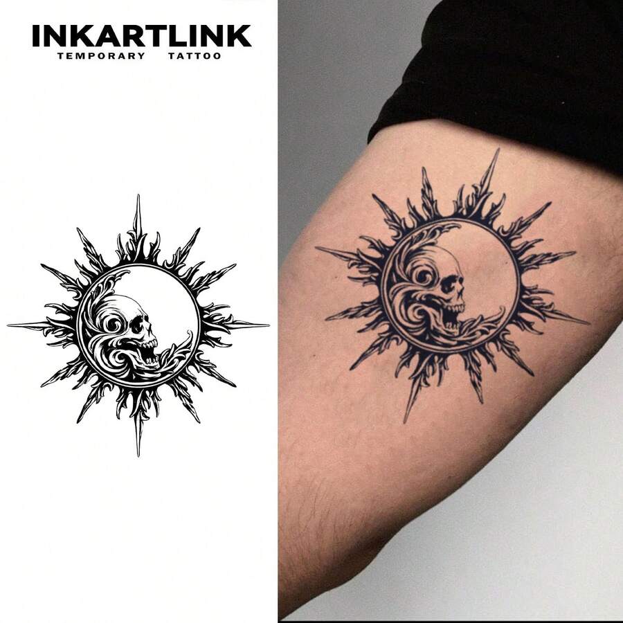 INKARTLINK 纹身贴纸 太阳骷髅临时纹身 防水持久 1-2 周 暗黑朋克图腾