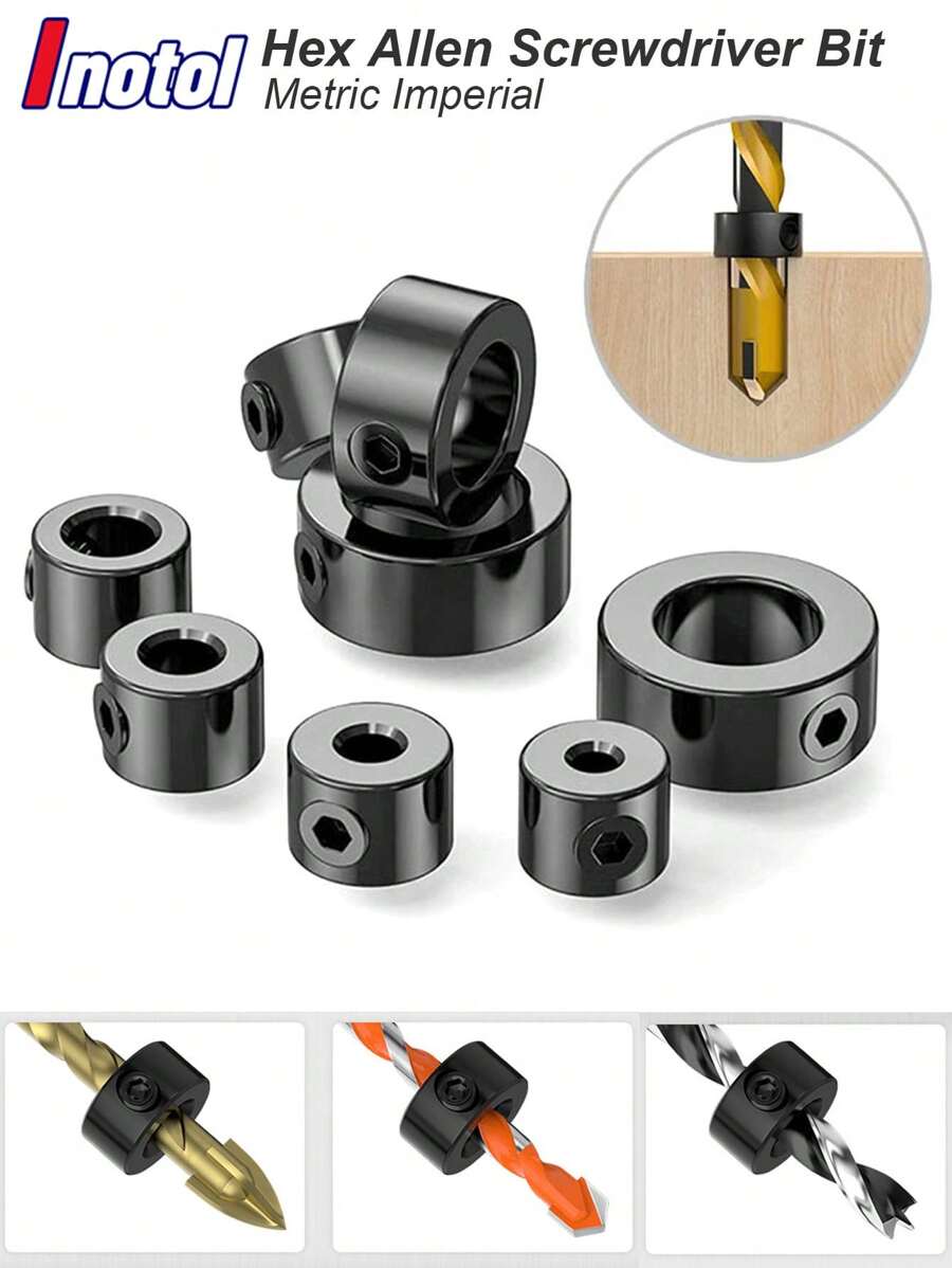 钻头限位环套装止动钻头环轴限位公制锁止器套件按压深度可调定位器孔导向木工工具不锈钢