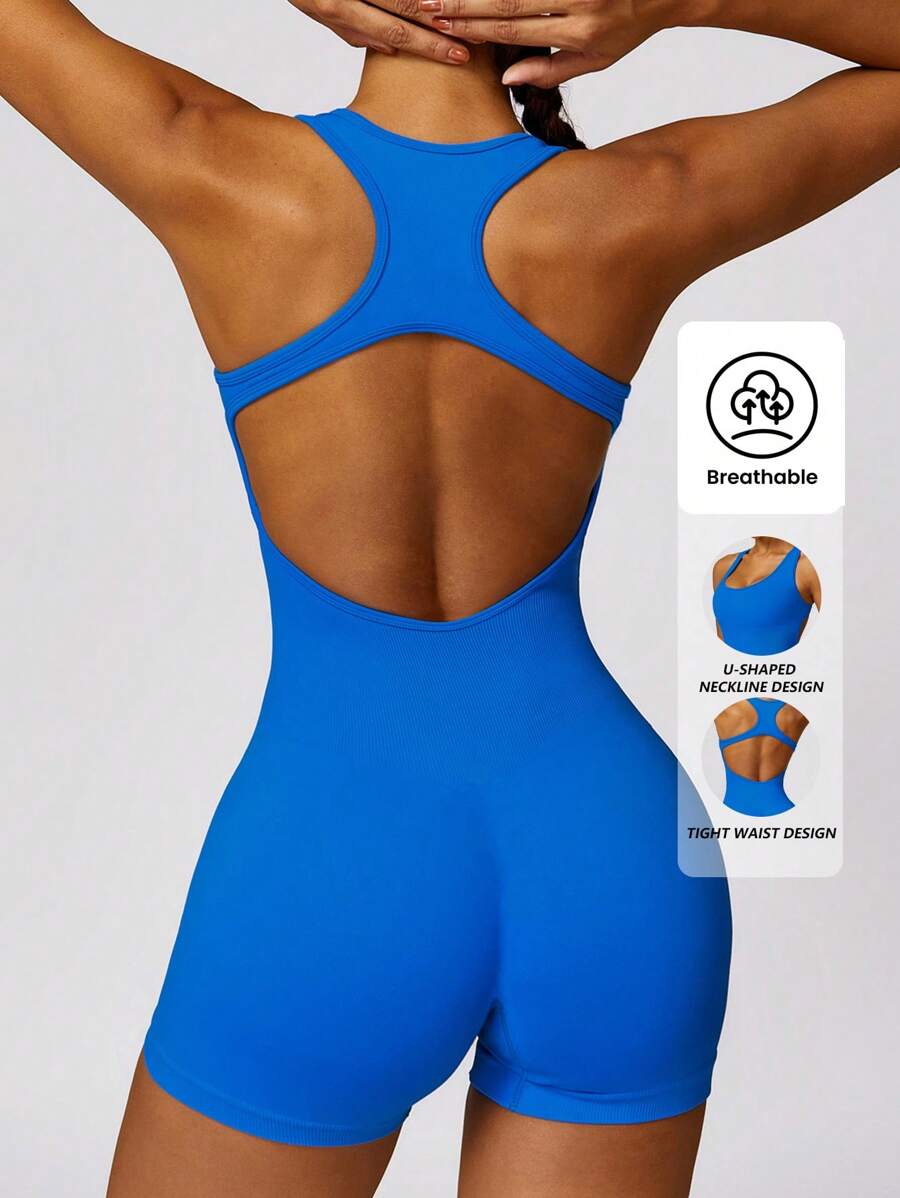Yefecy 瑜伽基本款纯色罗纹针织无缝运动连体衣,罗纹纯色时尚运动连体裤,高弹力瑜伽紧身衣,女士运动服,春夏塑身紧身衣