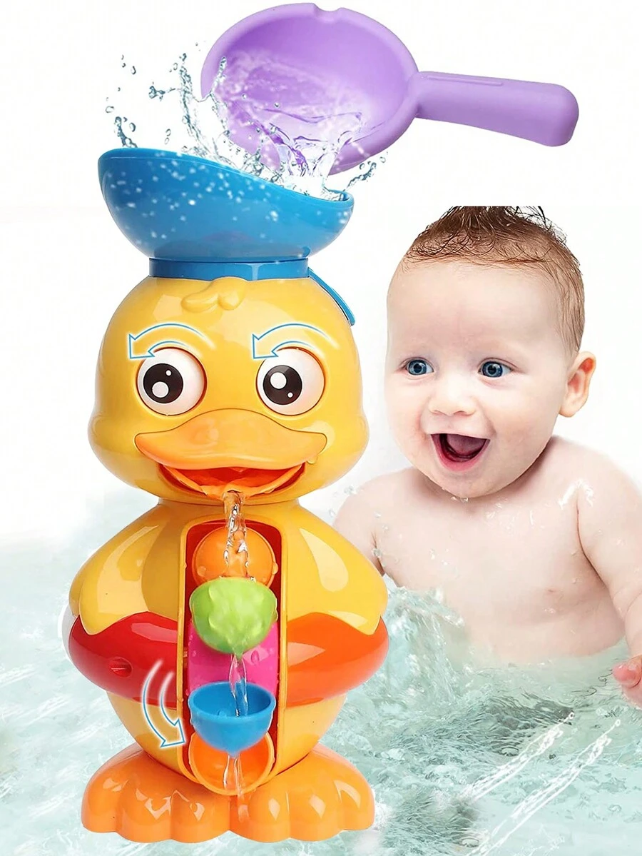 嬰兒玩具,幼兒浴缸玩具,帶有旋轉水輪/眼睛的鴨形浴缸玩具,浴室強力吸水器,有趣的幼兒浴缸玩具