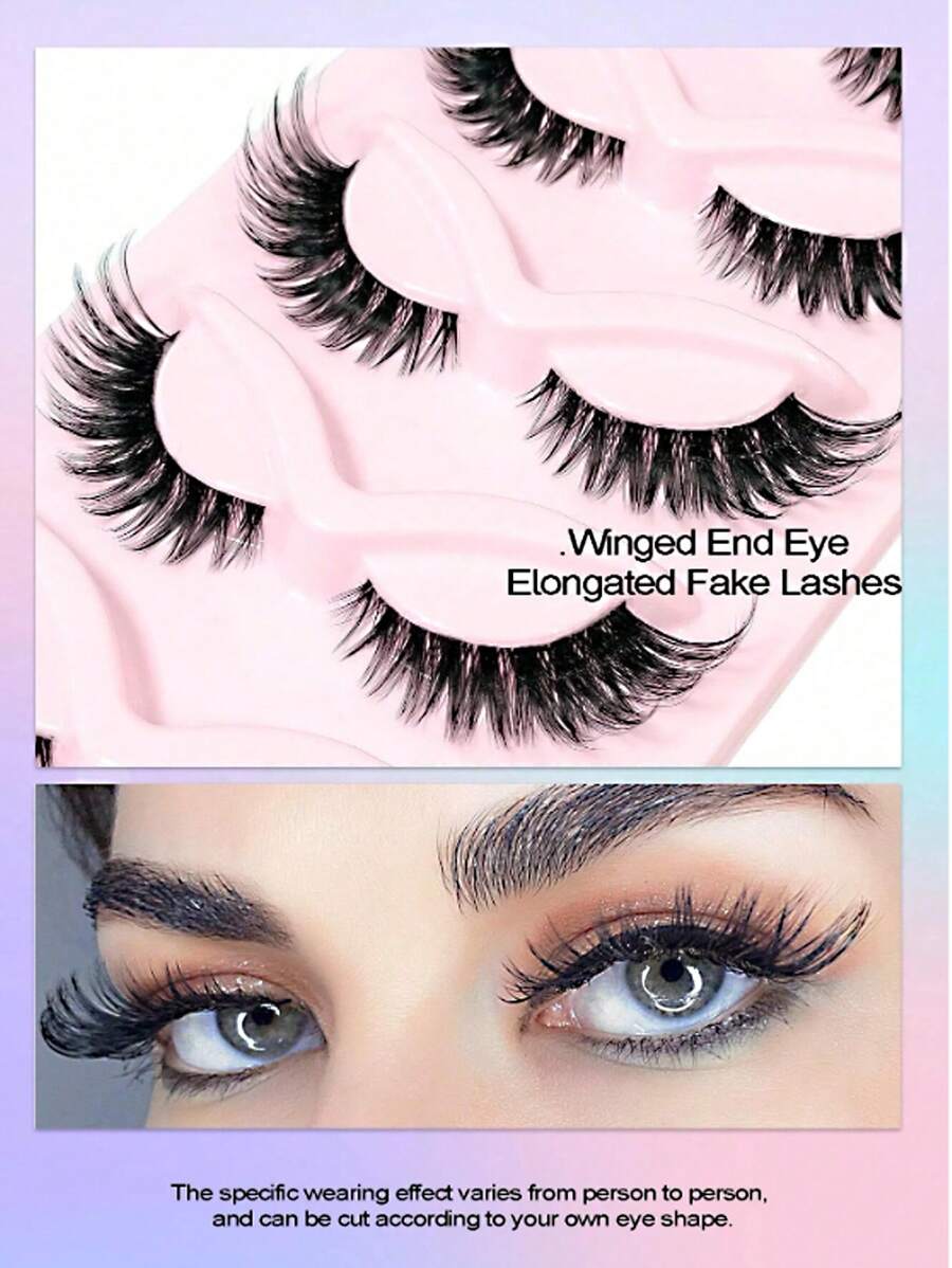 5 对猫眼睫毛 3D 自然假睫毛蓬松柔软交叉透明带状睫毛漫画睫毛纤细睫毛化妆