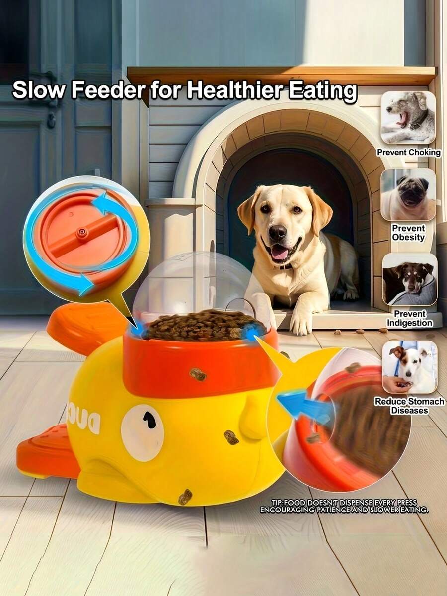 互动鸭形宠物喂食器玩具 - 橙色喙和脚设计耐用塑料拼图喂食器,无需电池,通过有趣的分配游戏吸引从小型到大型宠物,坚固的宠物玩具,宠物喂食站,俏皮的宠物设计,易握手柄