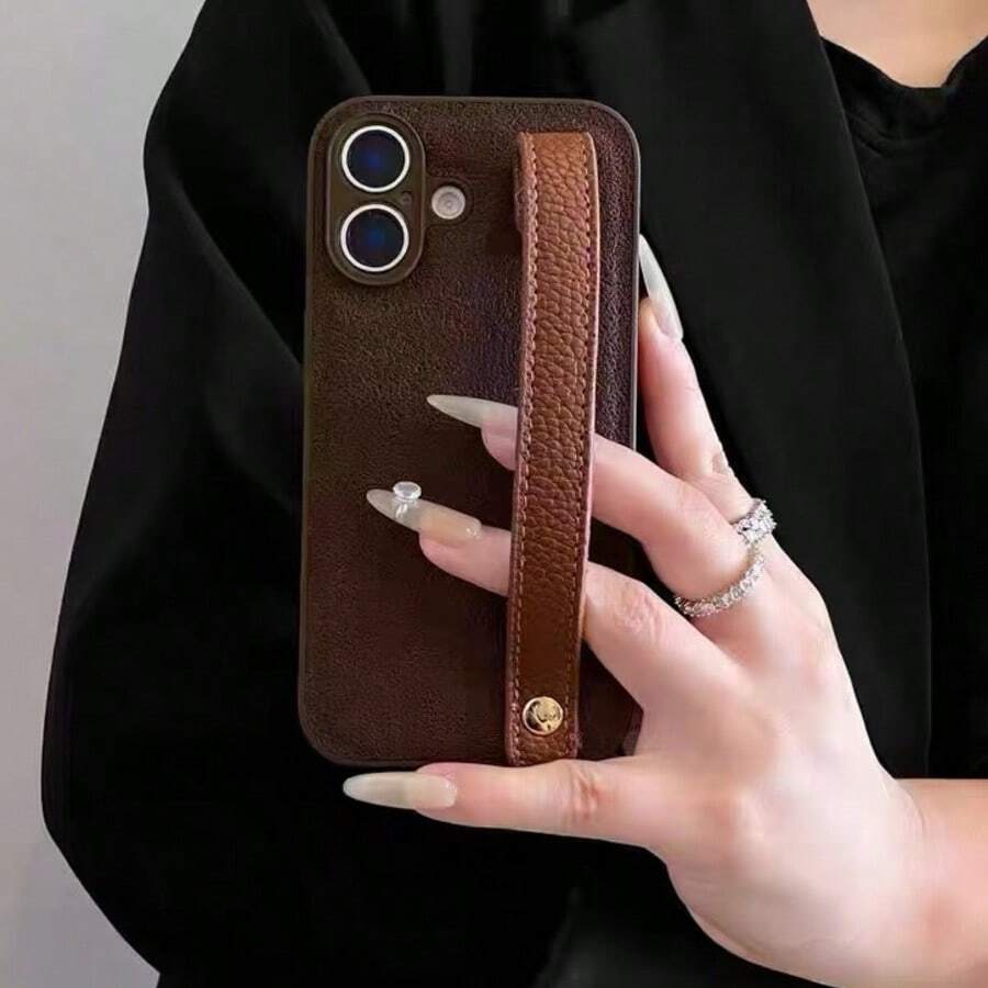 钥匙扣挂绳奢华新月图案腕带棕色手机壳,兼容 17 Pro Max、17 Pro、17、16、15、14、13、12、11 Pro Max Plus,优雅柔软的女士后盖
