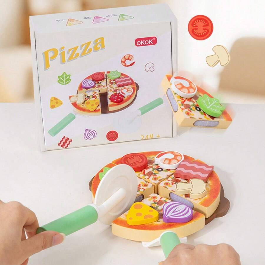 儿童木制披萨DIY切割玩具套装,适合男孩女孩角色扮演,儿童节和生日礼物