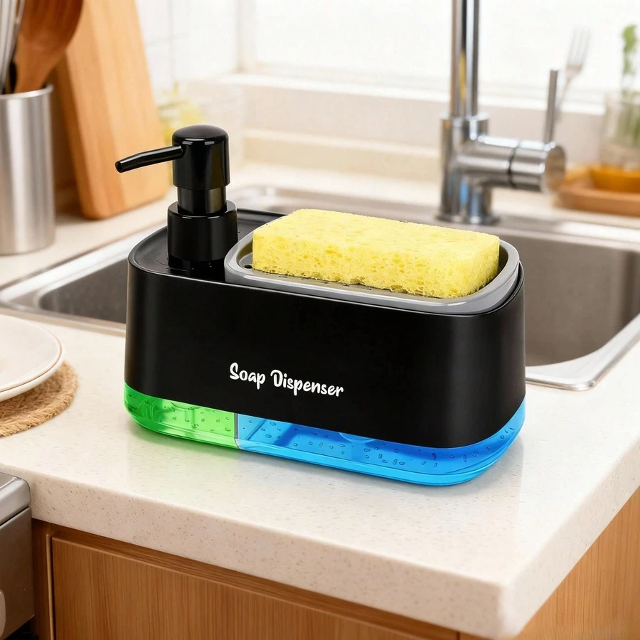 厨房洗手液和洗洁精套装,厨房皂液器,厨房收纳架,台面皂液泵,浴室皂液器,厨房配件,水槽收纳架,家居收纳,浴室配件,皂液容器,可重复灌装皂液瓶,现代家居装饰,厨房装饰,秋冬家居装饰,返校季装饰
