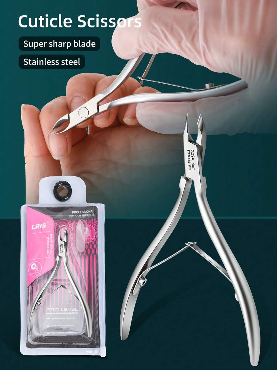 LRIS 1 件银色日式角质层钳,带死皮去除器和角质层推杆,不锈钢指甲刀,专业品质角质层修剪器,极其锋利的美发工具