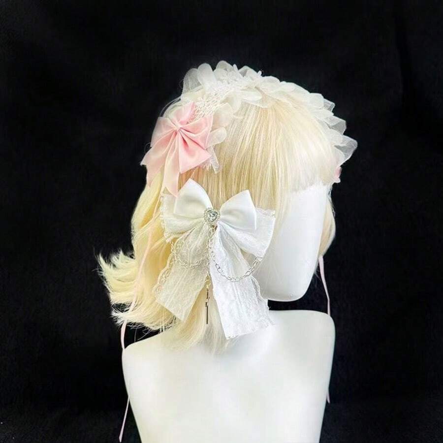 • 蕾丝蝴蝶结发箍,蕾丝发带,量产仙气发饰,甜美洛丽塔发夹 - 彩色 - 查看 10