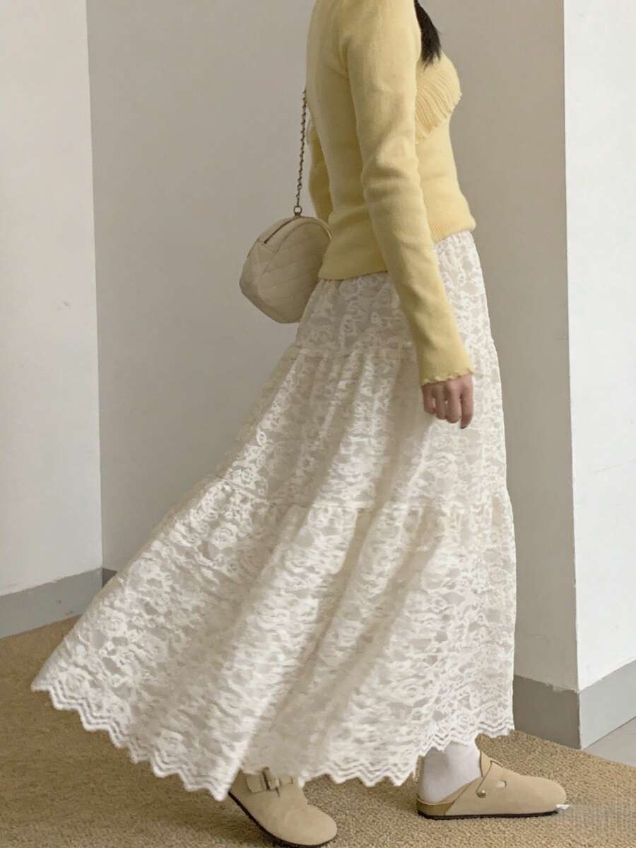 蕾丝拼接刺绣高腰半身裙,飘逸显瘦,荷叶边裙摆,百搭单品,2026春季新品