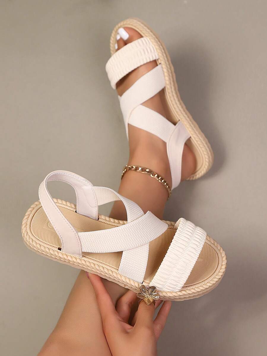 女士春秋新款罗马单层软底弹力面料交叉透气休闲舒适圆头平底凉鞋