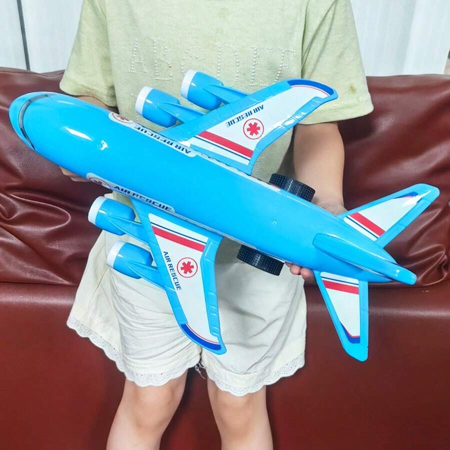 大型蓝色飞机玩具,惯性飞行器玩具模型,适合儿童男孩女孩,圣诞礼物,新年礼物