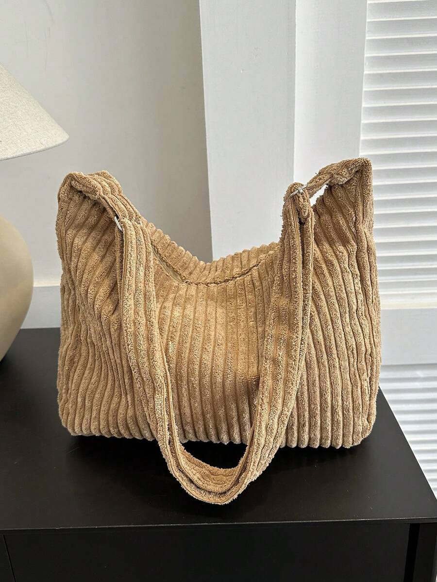 大容量的格紋絨布單肩包,絨布斜挎包