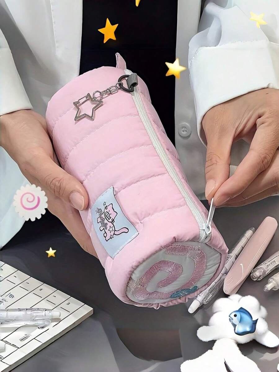 大容量可爱粉色猫咪造型铅笔盒,毛茸茸的鱼饼设计,文具收纳袋,高性价比铅笔盒,新款返校蝴蝶结铅笔盒 - 大号,也可作化妆包使用,小巧可爱,时尚百搭,大容量,女孩文具收纳盒,学习用品