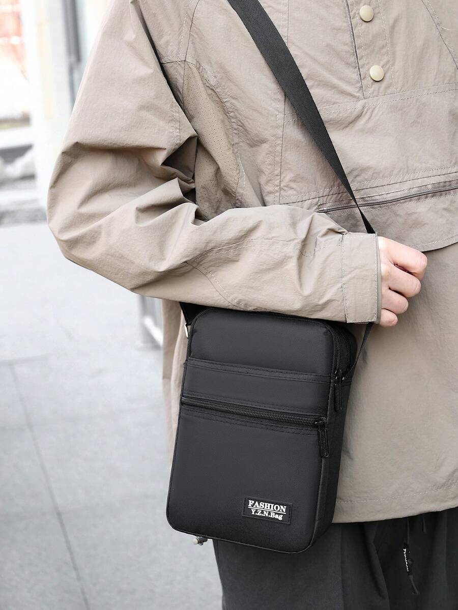 大容量时尚男士单肩斜跨邮差包,多功能可调节肩带拉链开合,多隔层实用收纳男包