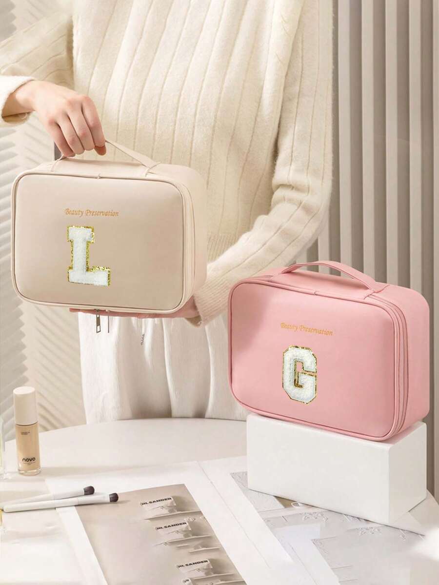 大容量防水粉色旅行化妆包,多层可拆卸化妆包,双层旅行化妆包,便携式化妆品收纳包,化妆刷收纳包,通用便携式化妆必备品收纳包,整齐收纳化妆品,便携式手持化妆盒,旅行化妆洗漱包,实用礼品收纳包,拉链设计