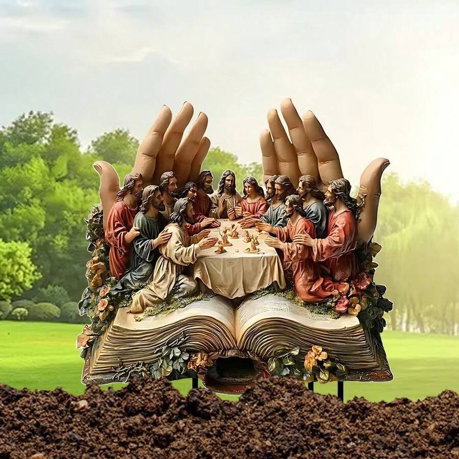 《最后的晚餐》亚克力花园摆件 - 优雅的庭院艺术品,配有木质底座,是户外草坪和花园装饰的完美之选,增添宗教魅力,是理想的礼物之选,木质,庄严,花园装饰