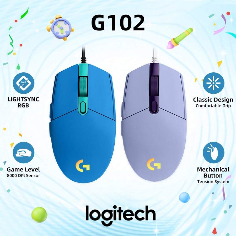 Logitech G102 Light Sync 有线游戏鼠标,带 RGB 照明、游戏级传感器、8000 Dpi 轻量级,适用于 PC 笔记本电脑游戏玩家