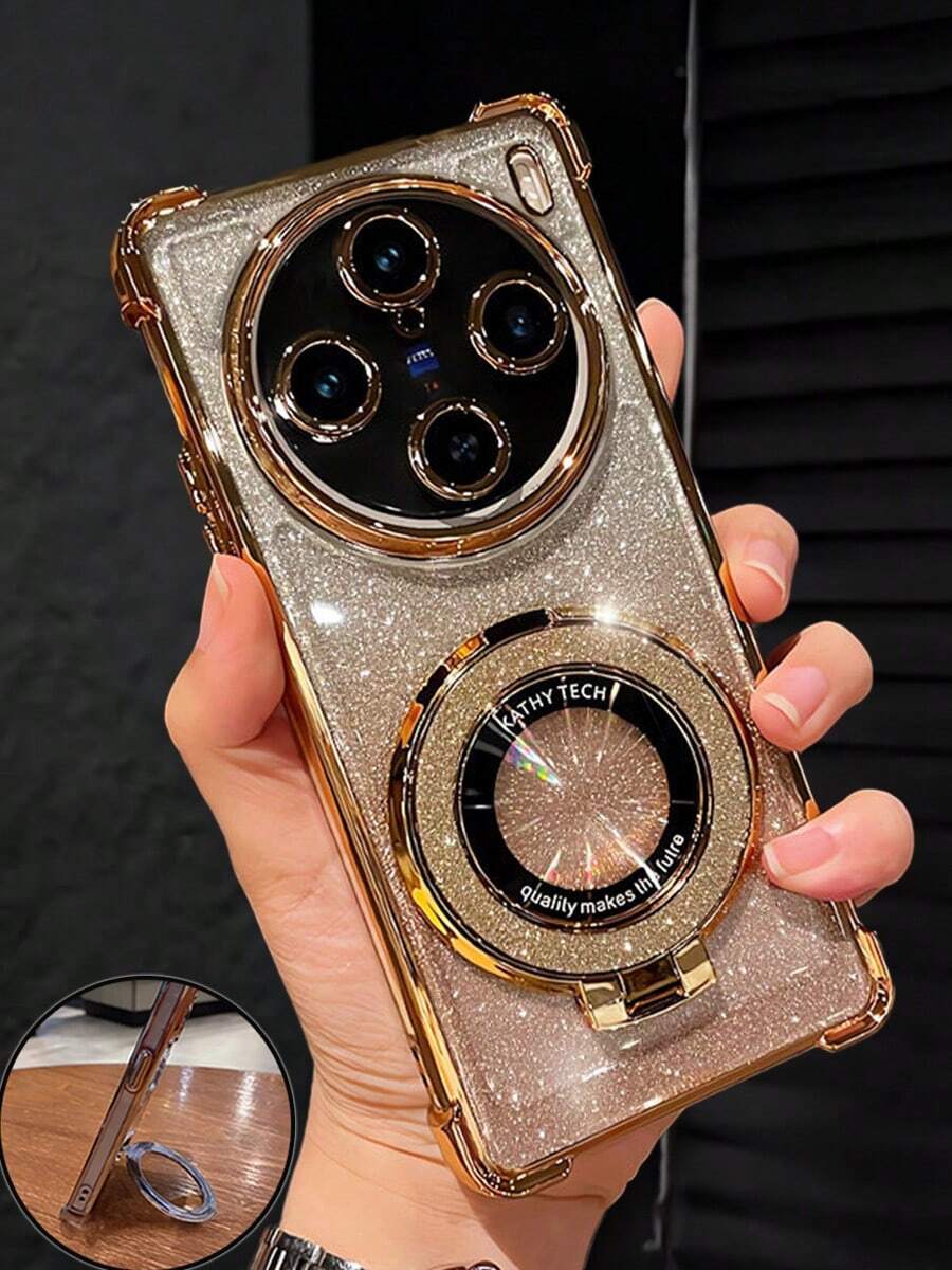 • 奢华电镀手机壳,创意圆形指环磁吸支架,闪亮水钻风格,新款夏季时尚硅胶防震软壳,兼容三星 Galaxy S24 S25 Ultra FE A56 A16 4G 5G、14C、荣耀 Reno MOTO 等机型,Y2K 风格男女通用 2025 - 金色 - 查看 3