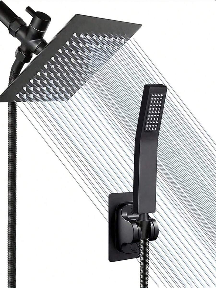 豪华淋浴系统 - 配备超大高压雨淋式花洒、可调节花洒臂、双模式手持花洒、超长软管、浴室挂钩,安装简便。是家庭浴室和酒店淋浴的理想之选。这款浴室配件将彻底改变您的淋浴体验——也是一份实用又贴心的乔迁礼物!