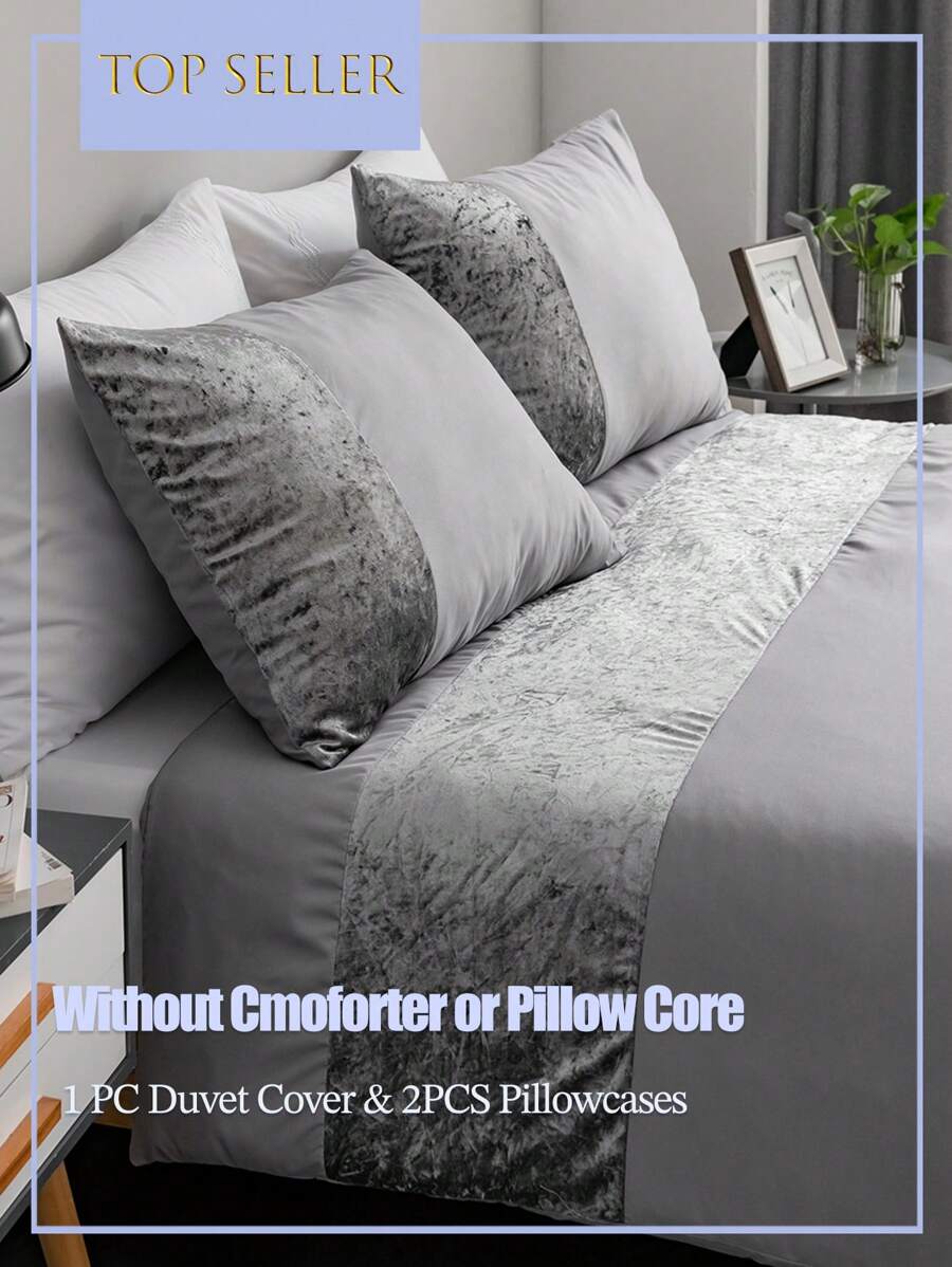 奢华天鹅绒被套套装,100% 超柔软涤纶面料,浅灰/深灰/白色可选 - 透气低过敏性床上用品(多种尺寸可选),现代纹理设计,适合所有季节 - 包括 1 个被套 + 1/2 个枕套(不含填充物),是送给女性/男性/青少年的理想礼物。