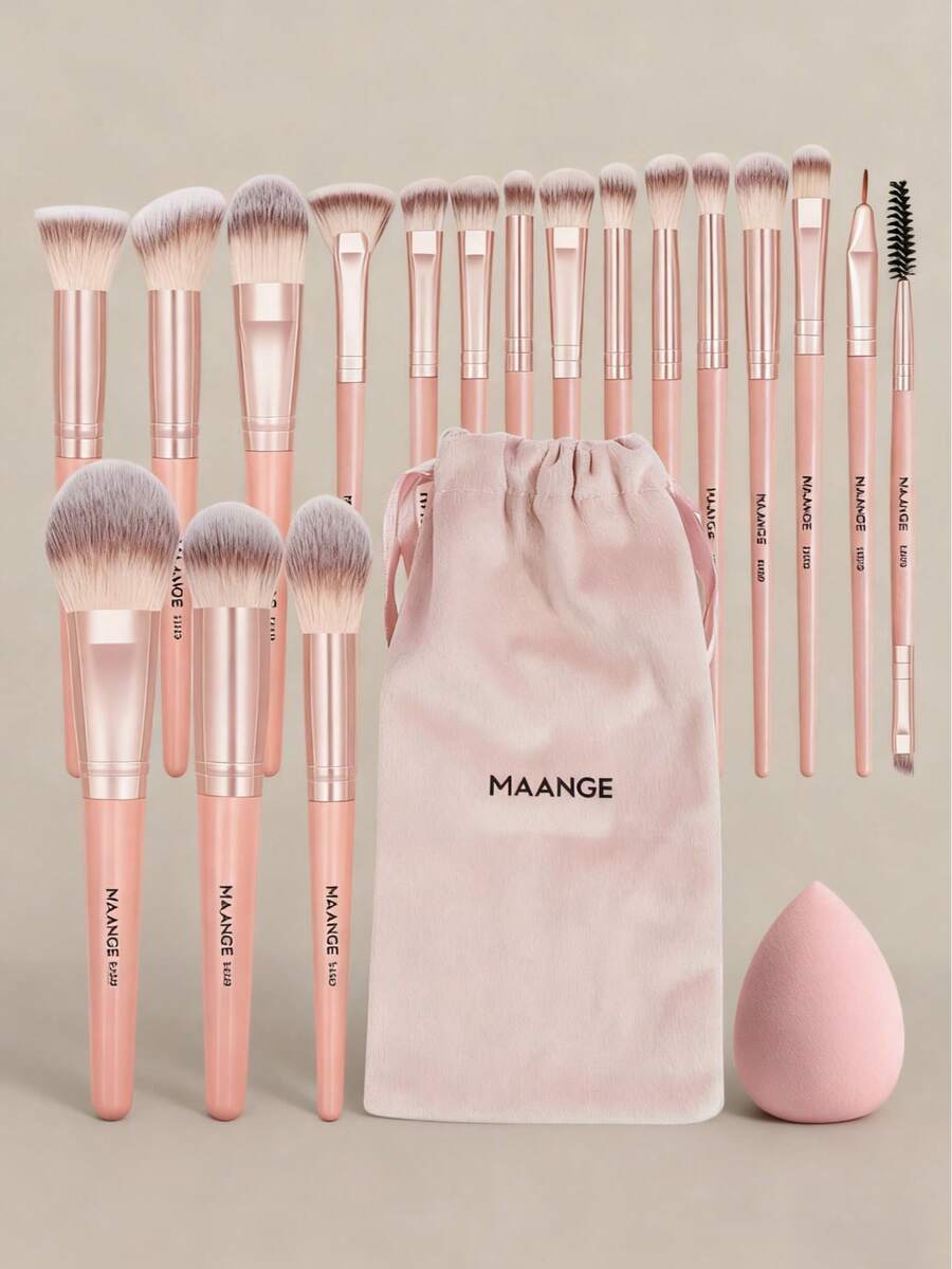 MAANGE 18支/20支化妆刷套装,包含18支专业化妆刷+1个收纳袋+1个水滴化妆海绵,还包含轮廓刷、粉底刷和散粉刷。