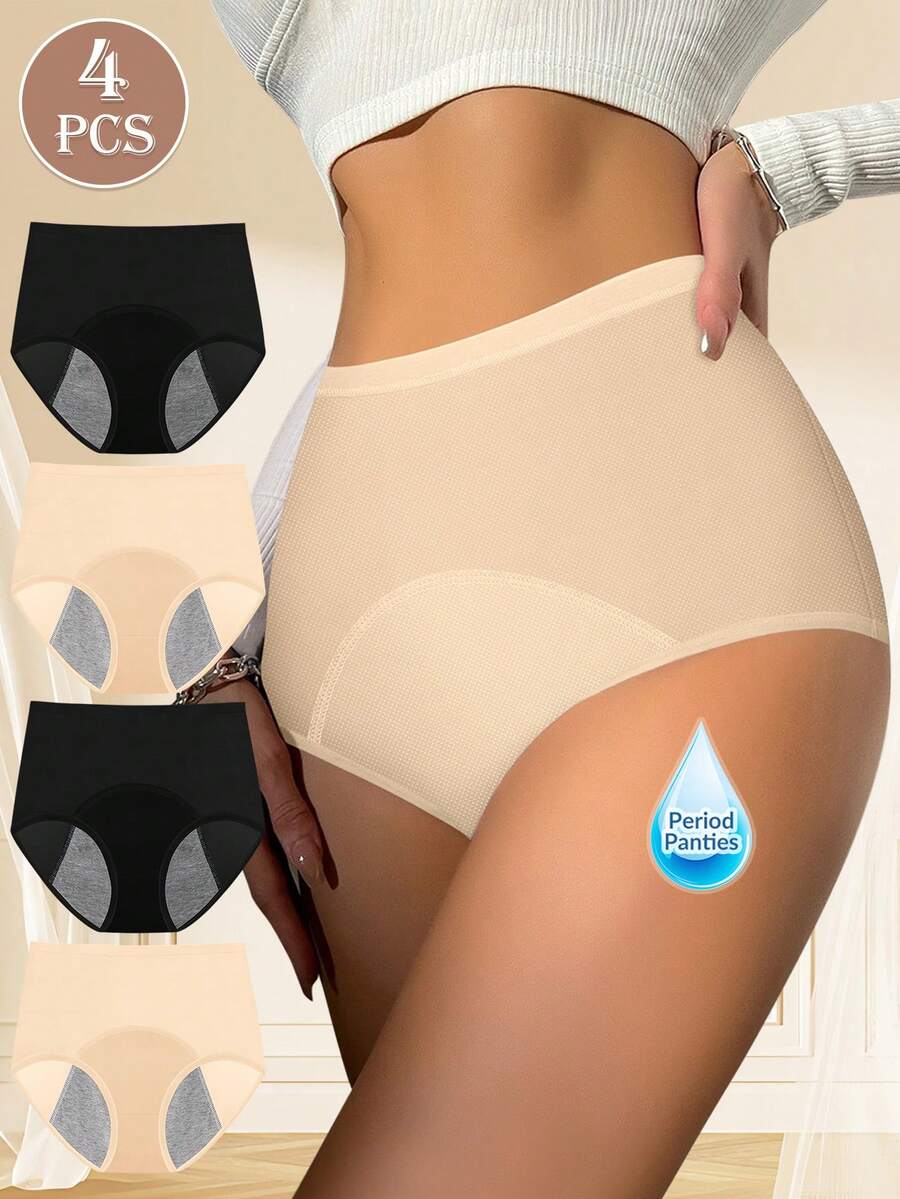 MEIYATING 4条装女士透气网眼无痕内裤,高腰防漏经期内裤