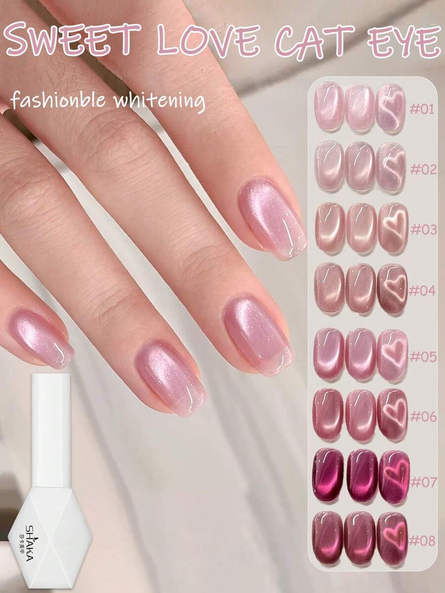 MISS SHAKA 10毫升秋冬美甲甜心系列粉色玻璃珠猫眼凝胶指甲油,裸粉色闪粉,流行金色玻璃珠凝胶美甲,美甲用品,圣诞美甲设计